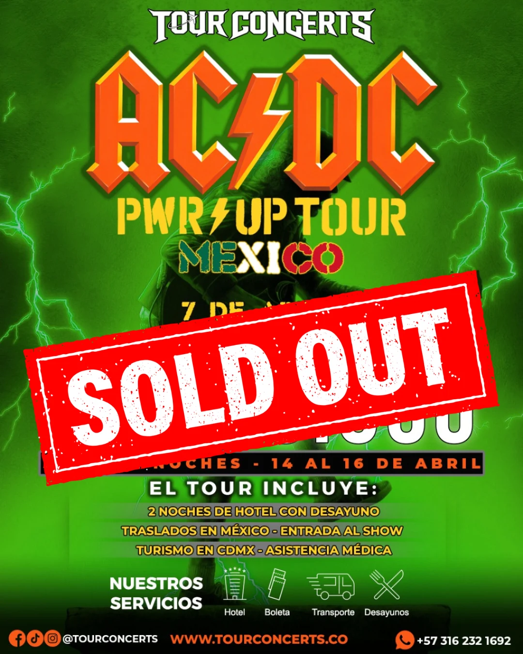 15 de abril: Desayuno, en la mañana city tour, luego almuerzo (incluido) en la tarde traslado al Estadio GNP Seguros para el show de AC/DC. Al finalizar regreso al hotel.